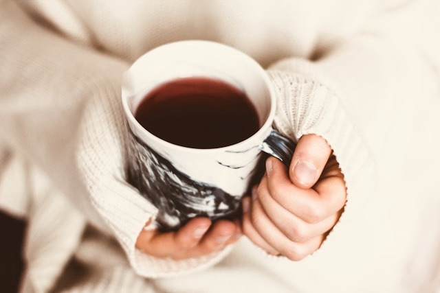 with a mug of tea